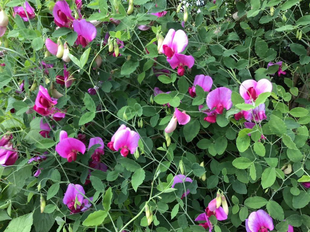But my trip down memory lane this morning was inspired by the picking of a small bunch of Lathyrus which is attempting to colonise the boundary hedge in our front garden.